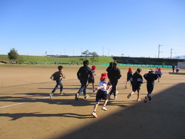 朝のトレーニングでは、来週のファミリーリレーマラソンに向けて練習をしています。長い距離を同じペースで走れるように、ファミリー班で励まし合っています。