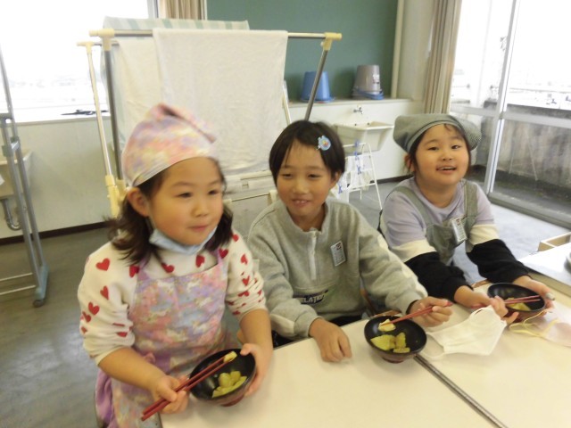 生活科の学習で植えたさつま芋を使って、お芋パーティーをしました。シュガーバターポテトとふかし芋、ポテトチップスを作りました。友達と協力しながら、美味しいお芋料理ができました。