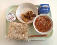 ごはん、牛乳、ふくらぎのかば焼き、とろろ昆布和え、ミニトマト、富山の野菜たっぷりみそ汁