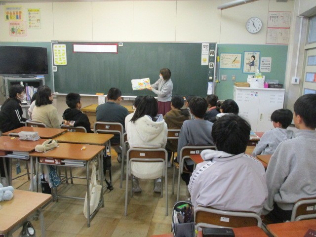 12月4日(木)~12月10日(金)は、人権週間です。今日は図書室の先生に人権に関する絵本の読み聞かせをしていただきました。一人一人ちがう個性や特性の尊重、人との関わり方等を改めて考える機会となりましたね。関わる人や友達を大切にしていきましょう!
