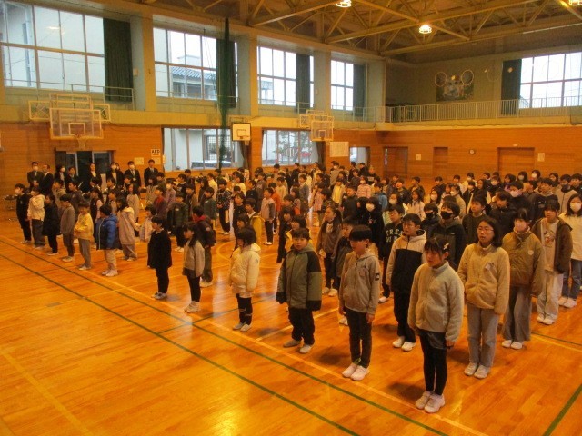 冬休みが明け、今日から3学期が始まりました。始業式に臨む子供たちの表情から「3学期もがんばろう」という気持ちが伝わってきました。次の学年や中学生に向けての『0学期』だと思って、一日一日を有意義に過ごしていきましょう。