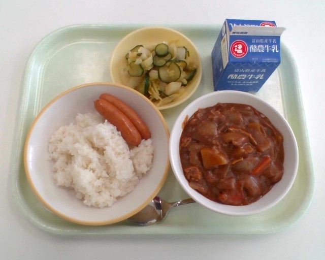 今日の給食はハヤシライスです。ハヤシライスは、玉ねぎをたっぷり使って作ります。玉ねぎは炒めると、まるで砂糖を入れたかのような甘みが出てきます。この甘さがハヤシライスのおいしさの秘密です。今日のハヤシライスにも玉ねぎをたっぷり入れました。