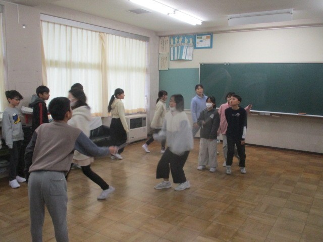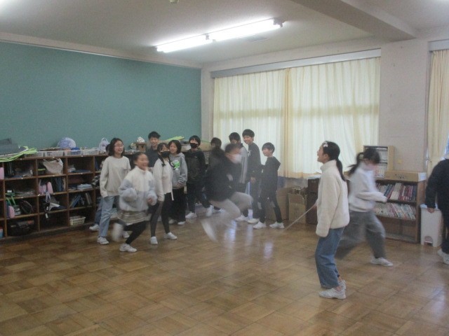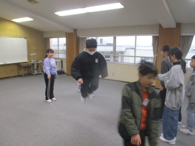 5、6年生は朝のトレーニングで、色団ごとに分かれて大縄跳びに取り組んでいます。