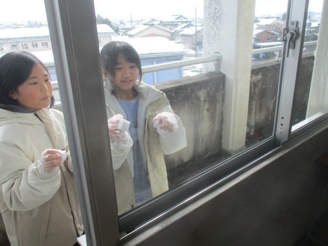 家庭科では、学校内の汚れているところを調べ、掃除をしています。