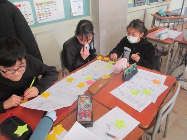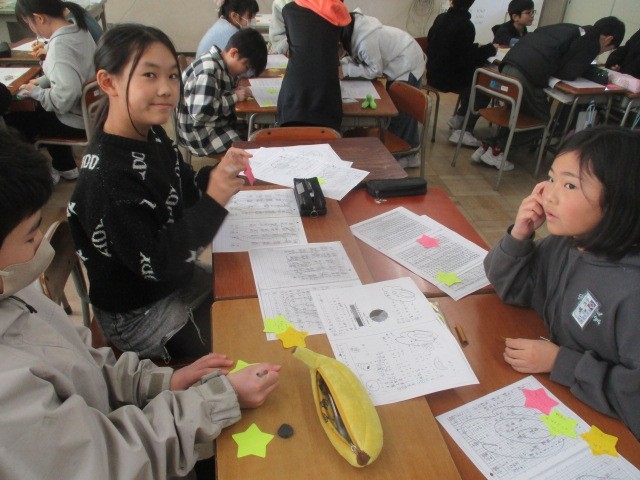 字の丁寧さやノートのまとめ方の工夫など、友達の取組のよさをたくさん見つけて伝え合っていました。