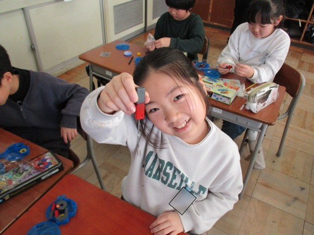 理科「じしゃくのせいしつ」では、磁石の極にはどんな性質があるのかを調べたり、磁石につけた鉄が磁石になる様子を観察したりしています。磁石がもつ力を体感しています。