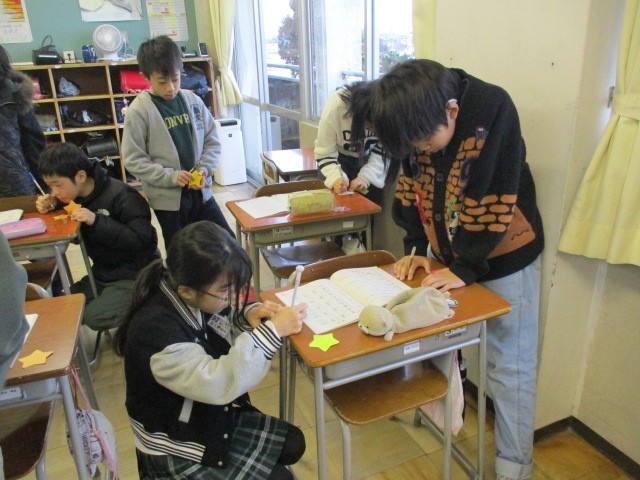 家庭学習がんばり週間に合わせて自学ノートを見合う時間を実施しました。友達のノートから見つけた「すてき」を自分の自学に生かせるといいですね!がんばり週間は残り2日間です。学習のたしかめも近づいてきています。計画的に自学や復習を進めましょう。