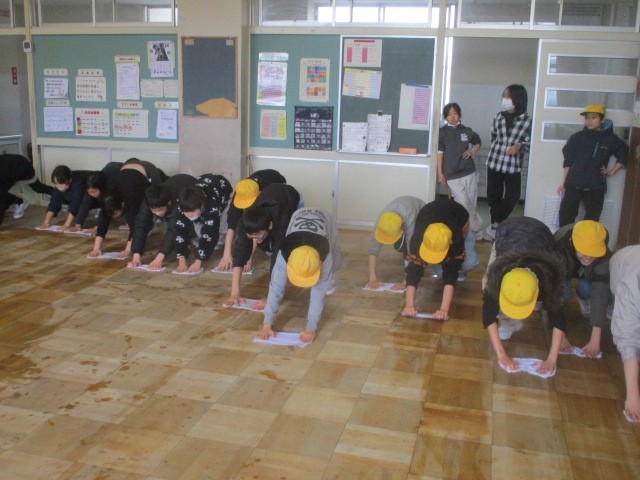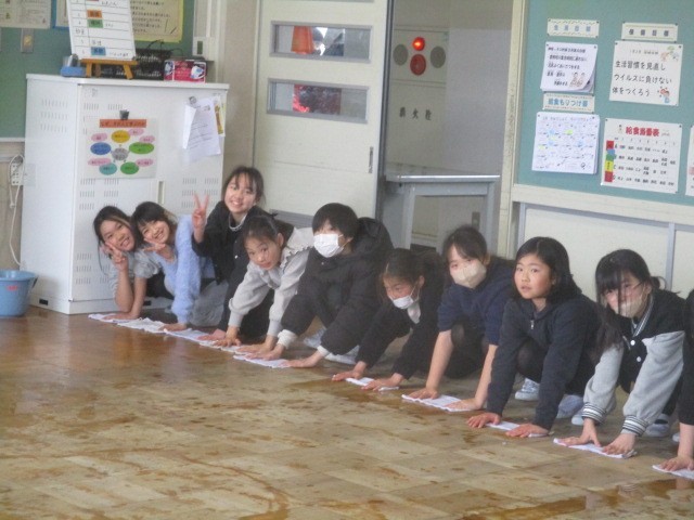 教室のワックスがけに向けて、5年生のみんなで教室の水拭きをしました。