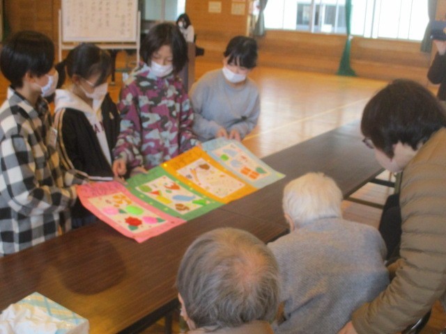 「日和野の方々に笑顔、元気になってもらおう」という目当ての達成に向けて、クイズや読み聞かせ、歌のプレゼントなどを行いました。どの活動でも子供たち、日和野の方々からたくさんの笑顔が見られ、心温まる交流会となりました。