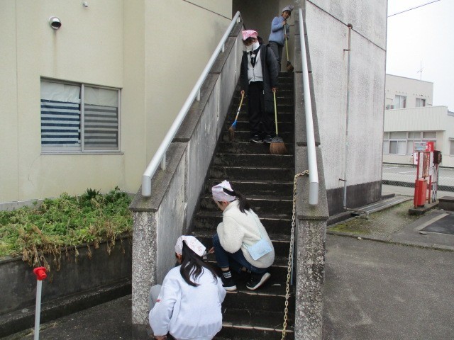 卒業プロジェクトの一環で、普段できない場所の掃除を行いました。体育館の水拭き、体育館ギャラリーや非常階段等、一生懸命きれいにしました。6年生のおかげでとてもきれいになりました。ありがとう!