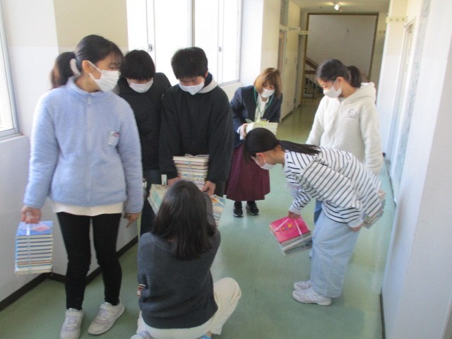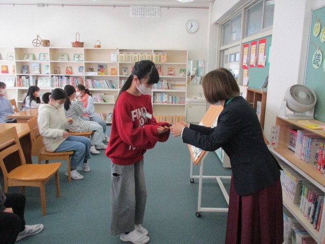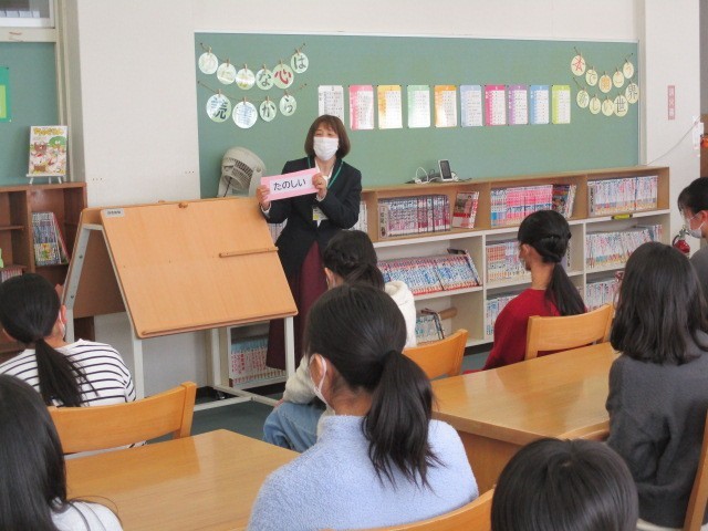 今日は図書室のお手伝い(廃棄する本の移動)をしました。その後、図書司書の先生から読み聞かせをしていただきました。そして6年間の貸出冊数と最初に借りた本も教えていただき、「え、こんな本借りたん?」と驚く声や笑い声が自然と聞こえてきました。(最多貸出冊数の児童:6年間で849冊)