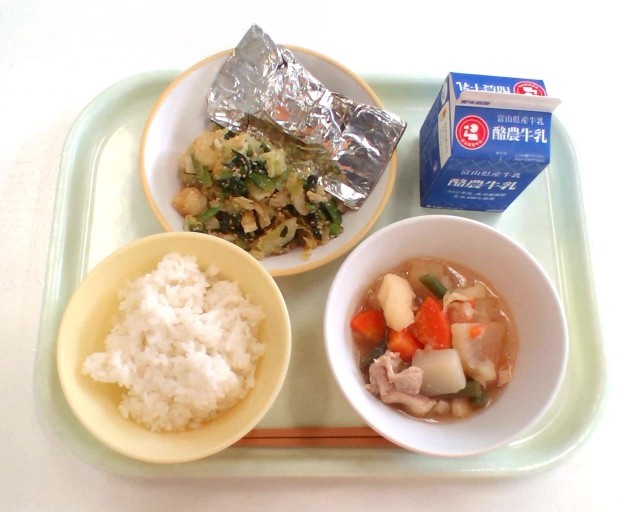 今日は、人気メニューさばの銀紙焼きでした。甘味噌をつけたさばは、ご飯との相性が抜群です。栄養たっぷりのさばを、全校でおいしくいただきました。