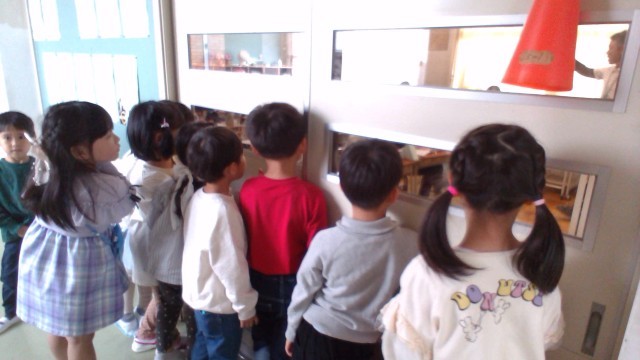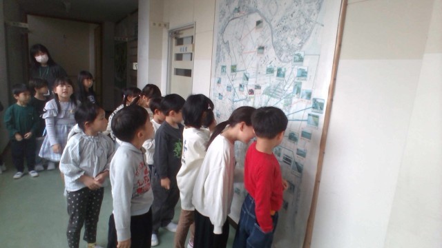 生活科の学習では、学校探検へいきました。給食室や図工室、上学年の教室など、初めて見る場所に目を輝かせていました。