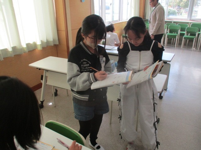 好きな色やスポーツ、動物など、様々なものを英語で友達と伝え合っています。
