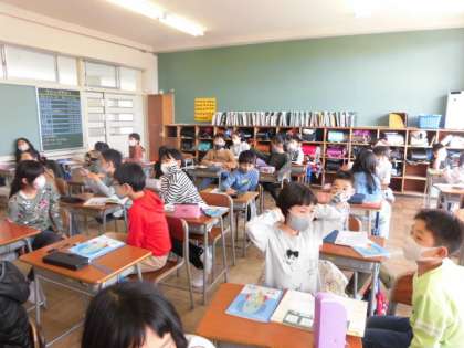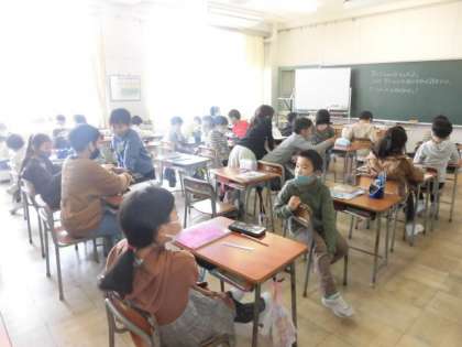 4年生になって、はじめての算数の時間。新しい教科書と、新しいノートを使うことに、うきうきしていました。今日は、じゃんけんを関わるクイズ!友達の考えを「なるほど〜!」とつぶやきながら聞き合っていました。