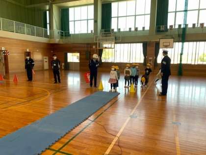 今日は、富山西警察署の警察官の方を招いて、交通安全教室を行いました。