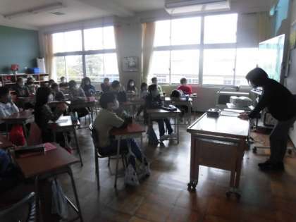 4年生 校長先生による読み聞かせタイム 公開日 2021/04/14 更新日 2021/04/14 4年生 今日の朝は、朝トレの代わりに、校長先生にサプライズで読み聞かせをしていただきました。レインボーカード達成を目指して、たくさんの本にふれあっていきましょう!