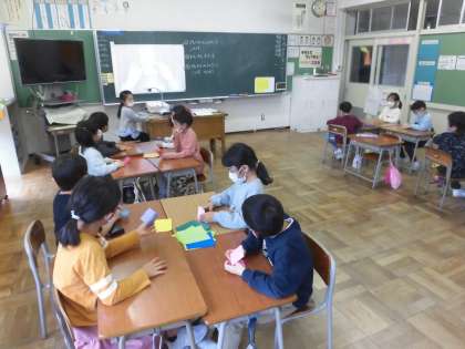 生活科の学習で、1年生に学校を案内することになりました。今日は、みんなで1年生にプレゼントするメダル作りをしました。作り方を知っている子がミニ先生になり、みんなに作り方を教えてくれました。喜んでもらえるといいですね!