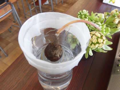途中、草の中に球根が落ちているのを見つけた子がいて、教室で育ててみることにしました。なにが育つか楽しみです。