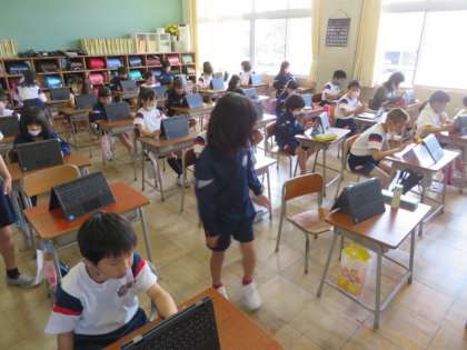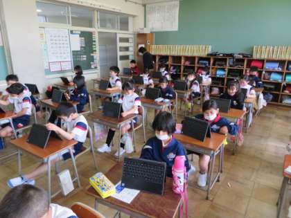 航空写真を見ながら学校の周りや富山市の様子を確認したり、見つけたことを書き込んだりしました。