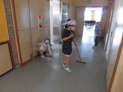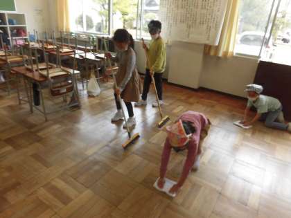 2年生になり、新館の掃除も担当しています。広い廊下や階段もありますが、役割分担をしっかりして取り組んでいます。早く終わった人は、進んで教室掃除を手伝ってくれます。よいチームワークの2年生です!