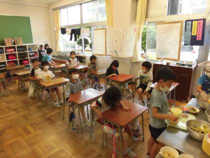 自分の役割をしっかりこなしています。待っている人も静かに席に座っています。続けていきましょう!
