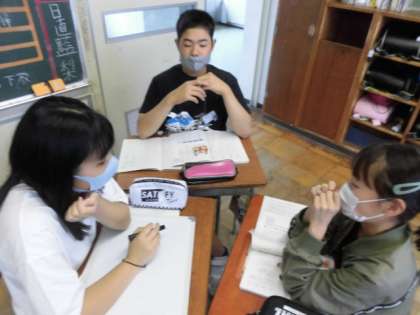 今日はグループで話題を決めて、その話題についての自分の考えをノートにまとめました。