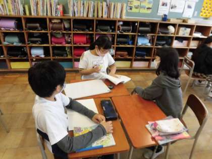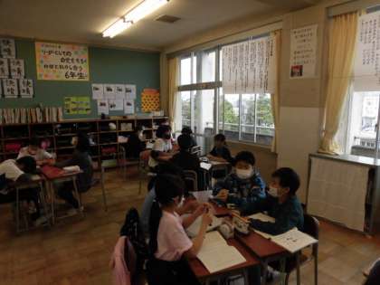 国語科の学習では、友達の意見を聞いて自分の考えを深めようという学習をしています。
