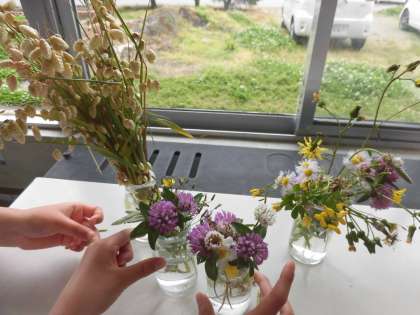 2年生 たんぽぽさがし 公開日 2021/05/20 更新日 2021/05/20 2年生 説明文「たんぽぽちえ」を読み、たんぽぽのことを詳しく知ることができたので、実際にグラウンドへ行き今のたんぽぽの様子を見てきました。ほとんど綿毛は飛んでなくなっていました。残っていたたんぽぽの綿毛を飛ばしたり、花束を作ったりして楽しみました。 4年生が体育でリレーをしていて、かっこいいバトンパスも見ることができました。