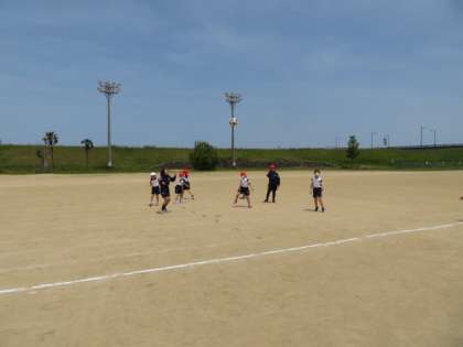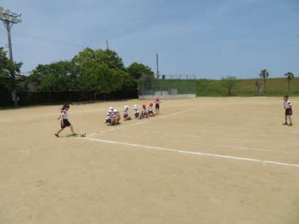 3年生 体育 キックベースをしています 公開日 2021/05/21 更新日 2021/05/21 3年生 体育科の学習では、キックベースに取り組んでいます。はじめは思い通りにボールを思い通りに蹴られたことに満足していましたが、蹴ってすぐに走り出し、1塁へ素早く向かう姿が多く見られるようになりました。