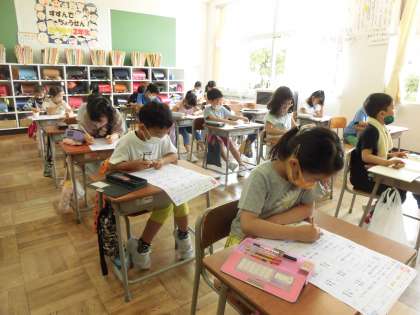 ひき算の筆算のテストをしました。計算ミスをなくすために、見直しもがんばりました。