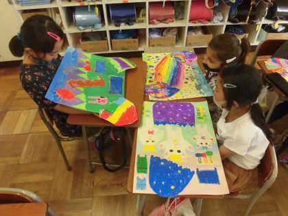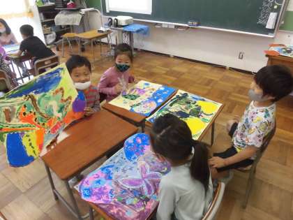 2年生 ひみつのたまごのお話づくり 公開日 2021/05/27 更新日 2021/05/27 2年生 図画工作科の学習で、制作していた「ひみつのたまご」の絵が完成しました。今日は、自分の絵に合わせたお話づくりをして友達に伝えました。どんなたまごから、何が生まれたのかがよくわかりました。