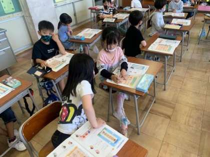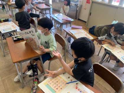 算数の時間には、「上から何番目、下から何番目」などという表し方で、どこに誰がいるのかを説明する学習をしています。