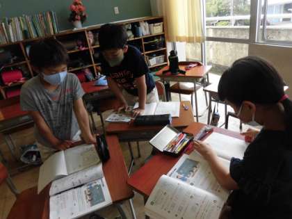 今日は「アップとルーズで伝える」の学習のまとめで、自分の考えを書いて紹介し合いました。音読もだんだん上手になっていましたね!