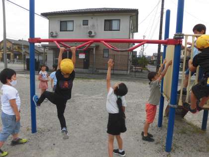 羽根西公園にも行きました。遊具だけではなくグラウンドのように広いスペースもあり、色々な遊びを考えて楽しみました。