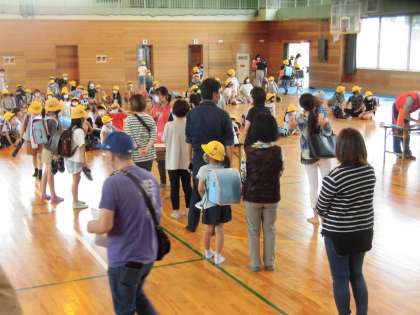 今日は、朝から刃物様のものを持った男が五福地内で目撃されたとの情報があり、児童の安全を守るため、引き渡しによる下校となりました。急な知らせにも関わらず、保護者の皆様にご協力いただき、感謝しております。