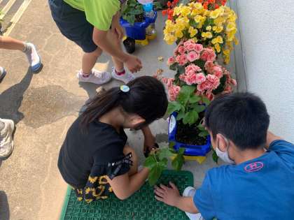 間引いたアサガオも、大切に別の容器に入れて育てています。
