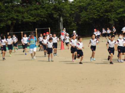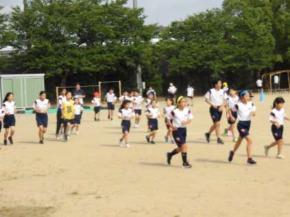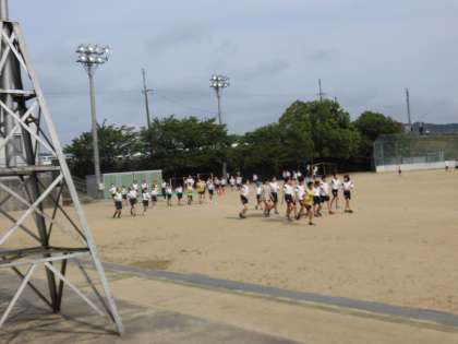子供たちは、今朝もグラウンドに出て、元気に朝トレーニングに参加しています。教職員も子供たちと一緒に走っています。