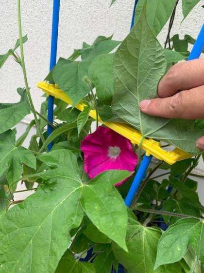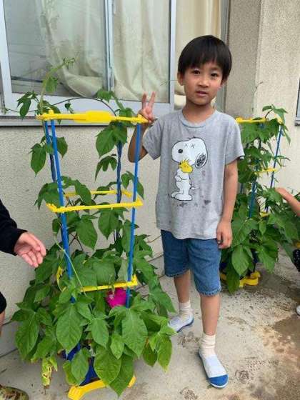 1年生の子供たちが栽培しているアサガオがついに花を咲かせました!!