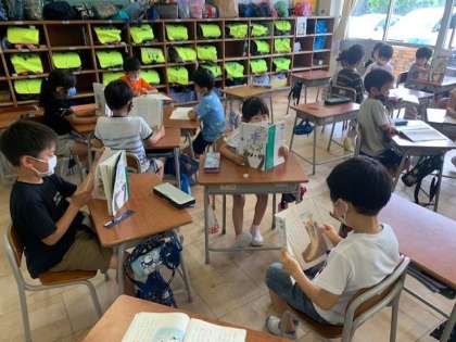 「おむすび ころりん」の音読発表会に向けて、たくさんの練習を積み重ねてきました。動作をつけたり、大きさやはやさを変えたりしながら、工夫して音読をしています!