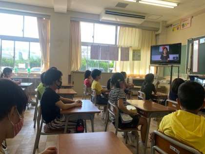 今日から2学期が始まりました。始業式はリモートで行いましたが、1年生のみんなは校長先生の話をじっくりと聞いていました。
