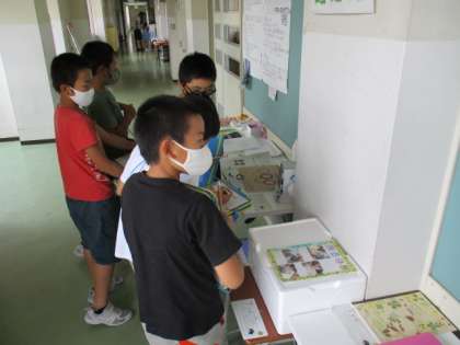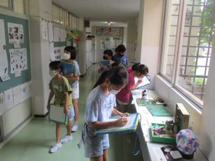 夏休みの作品展(一人一作品)を鑑賞しました。どの学年の作品も手が込められているものばかりで、鑑賞シートに「書きたい作品が多くて迷います!」と話してくれる子どもがいました。楽しそうに作品を鑑賞している姿にほっこりしました。