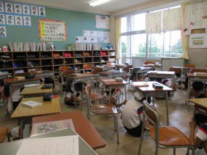 放送を聞き、真剣な面持ちで訓練に取り組んでいました。