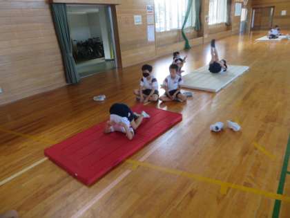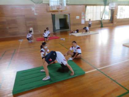3年生 体育 マット運動をがんばっています。 公開日 2021/09/06 更新日 2021/09/06 3年生 3年生の体育の時間には、マット運動を練習しています。 きれいに見えるように曲げるところや伸ばすところに気をつけながら練習を繰り返しています。友達とそろってできたときにはうれしそうにしていました。