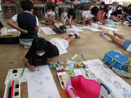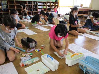 4年生 図画工作科〜まぼろしの花〜 公開日 2021/09/13 更新日 2021/09/13 4年生 それぞれが想像して描いた「まぼろしの花」に、色をつけました。色をつけると、よりすてきな花になりますね♪どんな花が生まれるのか、とても楽しみです。
