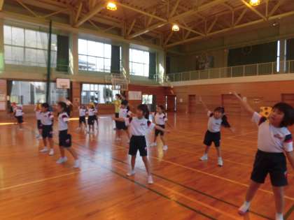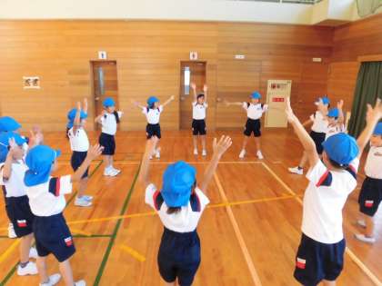 2年生 ダンス 公開日 2021/09/17 更新日 2021/09/17 2年生 1枚目 朝のトレーニングで、校長から、運動会で全校で踊るダンスを教えていただきました。 2,3枚目 体育の学習で、運動会の玉入れのときに踊るダンスを、1年生と一緒に練習しました。 2年生は、1年生のお手本となる「かっこいい姿」を目指して、運動会に向けて頑張りたいという気持ちをもっています。これから、他の種目の練習も始まります。お家でも応援をお願いします。