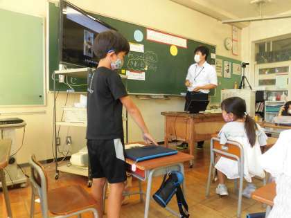 1年生は、今、生活科で「じぶんでできるよ 〜めざせ!いえのしごとめいじん〜」の学習をしています。今日は、自分が取り組んでいる家の仕事を紹介する学習をしていました。みんな、友達の話に真剣に耳を傾けていました。