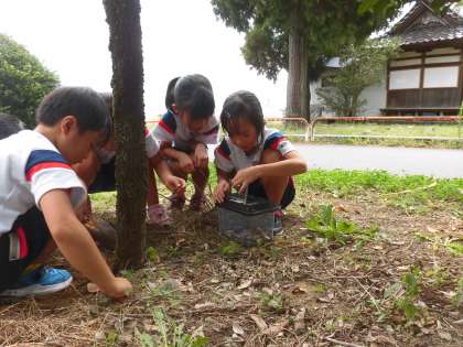 ダンゴムシとなかよしになるために、まずは、どんな場所に住んでいるのか調査しました。何かの下や隙間にいることが分かりました。