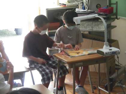 読み聞かせ係の2人が、クラスのみんなに読み聞かせをしてくれました。みんなに分かりやすい、上手な読み方でした。次回の読み聞かせも楽しみです。