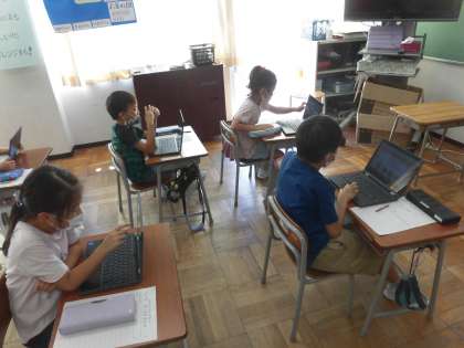 生活科「生き物となかよし」の学習では、ダンゴムシ調査隊を結成して、ダンゴムシについて調べたり、育てたりしています。この時間は、ダンゴムシについてもっとくわしくなるために、インターネットや本・図鑑を使って調べ学習をしました。食べ物や、住む場所についてくわしく知ることができました。